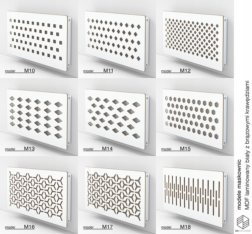 Nasze maskownice standardowo są wysyłane z darmowymi akcesoriami do montażu na grzejnikach żeberkowych. Dla klientów zainteresowanych innymi systemami montażowymi, serdecznie zapraszamy do odwiedzenia zakładki "Systemy Montażowe".